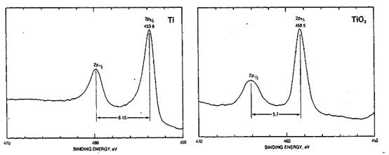 在XPS谱图上表现为谱峰相对于其纯元素峰的位移。