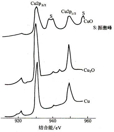 Cu和Cu2O没有2p3/2谱线的振激峰;而CuO则有。