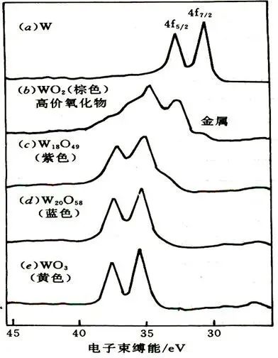 W的氧化数增加,更多价电子转移到O离子,4f电子的束缚能移向较高能量。